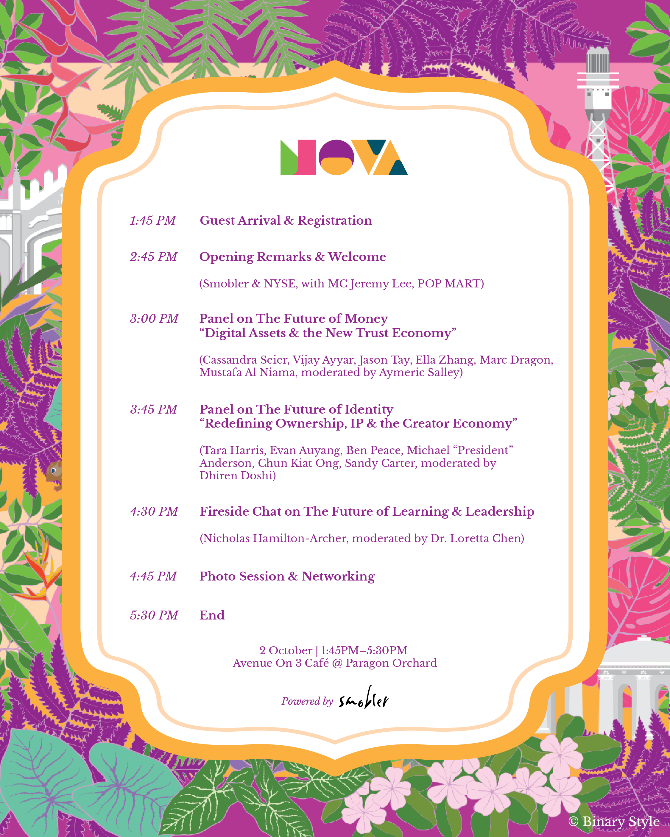 At Smobler, we believe technology must serve humanity’s most pressing needs. That vision came alive at NOVA through powerful conversations on The Future of Money, The Future of Identity, and The Future of Learning & Leadership—uniting voices from Wall Street to Orchard Road, Web2 to Web3, academia to industry, and culture to code.